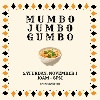 November 1 (Saturday) - Soup Saturday with Mumbo Jumbo Gumbo and... the release of Christmas items!